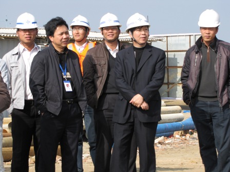 市委書(shū)記陳耀光、市長(zhǎng)阮日生等領(lǐng)導(dǎo)與鄭董事長(zhǎng)一道走到施工前沿,察看熱火朝天的施工現(xiàn)場(chǎng),并向節(jié)日期間堅(jiān)守崗位的建設(shè)者表示慰問(wèn)。市委書(shū)記陳耀光強(qiáng)調(diào),湛江港要抓住機(jī)遇、加快建設(shè)步伐,各施工單位要嚴(yán)格抓好安全、質(zhì)量管理工作,確保工程優(yōu)質(zhì)安全地完工。