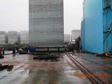 ??诟垴R村港區(qū)擴(kuò)建一期工程沉箱預(yù)制件共75件,第一批沉箱預(yù)制工作自從2008年5月23日開始,目前已經(jīng)完成四條生產(chǎn)線共45件沉箱的預(yù)制任務(wù),2009年3月10日開始沉箱出運(yùn)準(zhǔn)備工作,并于3月26日開始第二批沉箱的預(yù)制。目前,第二批沉箱工作和沉箱出運(yùn)工作正有條不紊地 。