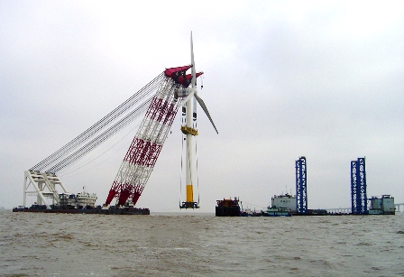 四航奮進號安裝我國首個海上風力發(fā)電場風機