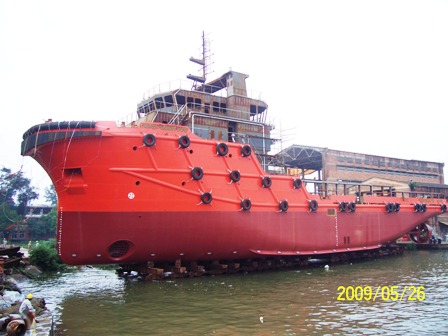 5月26日,航通公司為新加坡某公司建造的58.7米多用途工作船(第27艘)順利下水。