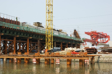 截至目前,京滬高鐵上海嘉定梁場已完成134片箱梁預(yù)制任務(wù),架設(shè)箱梁55片;架橋機轉(zhuǎn)場工作已經(jīng)開始,掉頭后將開始"滬向"架橋工作。