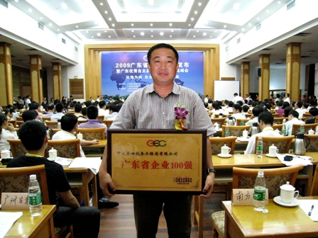 "2009廣東省企業(yè)100強"是在廣東省企業(yè)聯(lián)合會和廣東省企業(yè)家協(xié)會的組織下,由企業(yè)自主申報,并依據(jù)國際通行的方式,經(jīng)專家評審委員會嚴(yán)格、公正、客觀地綜合評價和經(jīng)網(wǎng)上公示而評出的。
