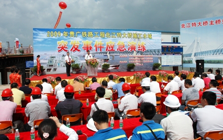 四航局黨委副書記阮祥發(fā),佛山市安監(jiān)局、海事局和貴廣鐵路佛山段監(jiān)理、施工單位領(lǐng)導到演練現(xiàn)場觀摩并講話,對本次演練活動給予充分肯定,希望四航局貴廣鐵路工程指揮部和佛山市海事局通過本次演練,進一步把貴廣鐵路建設的各項安全工作做得更實、更細、更好,確保安全生產(chǎn),切實提高突發(fā)事件的應急處置能力,最終實現(xiàn)"構(gòu)建平安貴廣鐵路"的目標。