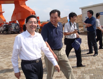 7月22日上午,廣西壯族自治區(qū)黨委書記、人大主任郭聲琨,自治區(qū)副主席陳武一行在欽州市委書記湯世保、市長(zhǎng)張曉欽、廣西北部灣國際集團(tuán)董事長(zhǎng)葉時(shí)湘、中石油廣西石化總經(jīng)理吳恩來等領(lǐng)導(dǎo)的陪同下,視察三公司欽州港項(xiàng)目部承建的大欖坪保稅港區(qū)1號(hào)、2號(hào)泊位碼頭以及正在籌建開工的3號(hào)-8號(hào)泊位、30萬噸油碼頭工地。