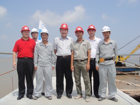 8月19日,四航局董事長(zhǎng)梁卓仁在三公司總經(jīng)理何勇、上海分公司總經(jīng)理梁宇的陪同下到三公司舟山項(xiàng)目部檢查指導(dǎo)工作。