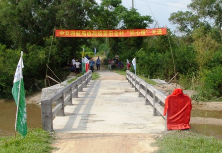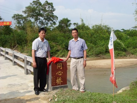 9月18日,由四航局捐款修建的舊倉村委會古朗村"同心橋"開通儀式隆重舉行,四航局黨委副書記阮祥發(fā)和新墟鎮(zhèn)委書記陳偉生共同為"同心橋"揭牌。