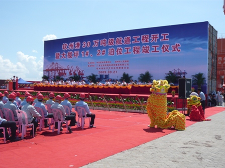 欽州保稅港1號、2號泊位碼頭舉行竣工儀式