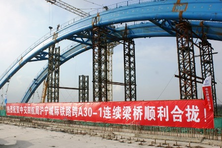 滬寧城際鐵路跨A30連續(xù)梁橋如期合攏