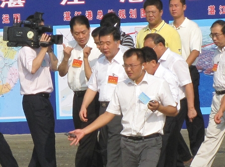 9月27日,中共中央政治局委員、廣東省省委書記汪洋一行在湛江市市委書記陳耀光,市長阮日生等領導的陪同下,到三公司湛江港寶滿集裝箱碼頭一期工程視察。