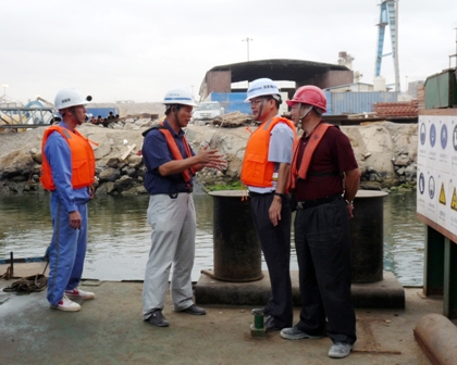 9月29日,前往安哥拉工地慰問指導(dǎo)的三公司黨委書記、副總經(jīng)理陳浩平實(shí)地考察了船舶修理車間、船舶廠修現(xiàn)場(chǎng)后,對(duì)安哥拉船舶部廣大員工的愛國熱情和目前的各項(xiàng)工作給予充分肯定。他強(qiáng)調(diào),要細(xì)化安全管理工作,進(jìn)一步加強(qiáng)生產(chǎn)安全管理,杜絕安全責(zé)任事故的發(fā)生。