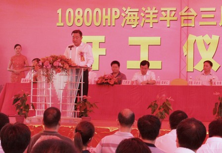 浙江省武義縣縣委書記江躍進(jìn)在儀式上指出,航通公司在海洋工程船舶建造方面有豐富的施工經(jīng)驗(yàn),把10800HP船交給航通公司建造很放心。