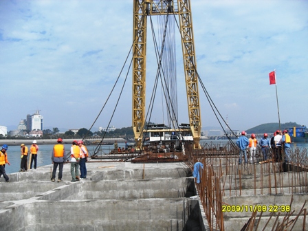 11月9日,廈門港嵩嶼二期項(xiàng)目部順利完成延長(zhǎng)段全部沉箱安裝工作,僅用了8天的時(shí)間,便將5件單件重量達(dá)2653噸的沉箱安裝成功,為該工程后續(xù)分項(xiàng)施工提供了有利的施工條件。