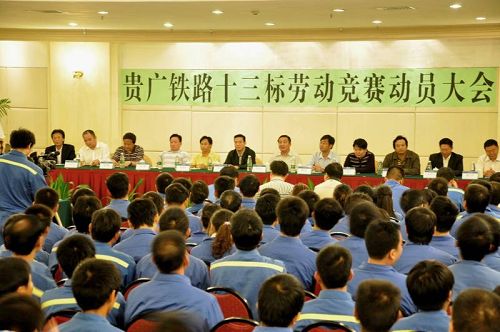 此次勞動競賽活動是為深入推進學習實踐科學發(fā)展觀活動,全面貫徹"貴以道惠民,廣以和致遠"核心理念,嚴格落實貴廣鐵路"六位一體"建設管理要求而組織實施的,旨在通過"比安全生產(chǎn),創(chuàng)平安佳績;比工程質(zhì)量,創(chuàng)優(yōu)質(zhì)精品;比工程進度,創(chuàng)一流效率;比科技攻關,創(chuàng)工藝工法;比標準化建設,創(chuàng)文明工地;比環(huán)境保護,創(chuàng)綠色通道;比廉政建設,創(chuàng)陽光工程"等"七比七創(chuàng)"勞動競賽活動,進一步激發(fā)員工勞動積極性和創(chuàng)造性,全面掀起大干快上施工高潮,確保又好又快建設貴廣鐵路,實現(xiàn)"創(chuàng)新、精品、綠色、和諧" 貴廣的宏偉目標。