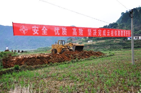 二公司云桂鐵路項目部從6月1日開始積極開展征遷工作,目前已取得征地約150畝(高坡營區(qū)征地約40畝,隧道施工便道征地約110畝)。目前,高坡營區(qū)已完成場地平整,正抓緊搭建活動板房等工作。