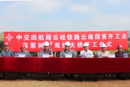 9月20日,四航局云桂鐵路項(xiàng)目部舉行首開工點(diǎn)--麻栗樹1#大橋開工儀式,這標(biāo)志著四航局云桂鐵路項(xiàng)目由前期施工準(zhǔn)備階段正式進(jìn)入主體工程施工階段。四航局黨委副書記張猛出席開工儀式并宣布開工,丘北指揮部、監(jiān)理項(xiàng)目部派員出席儀式。