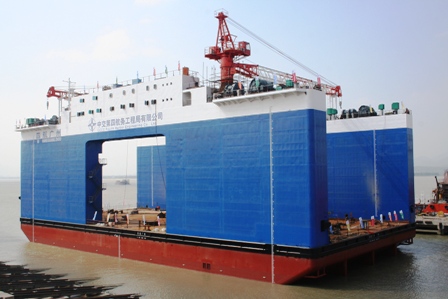 四航局投資建造的8000噸半潛駁順利下水