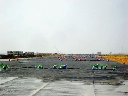 該工程位于湛江港湛江灣西北側(cè),南接湛江市霞山區(qū)工業(yè)園寶滿區(qū),北側(cè)毗鄰湛江港油碼頭,地基處理總面積為95.45萬平方米,采用真空聯(lián)合堆載預壓處理、后期在軌道區(qū)域內(nèi)施打水泥攪拌樁的施工方案。