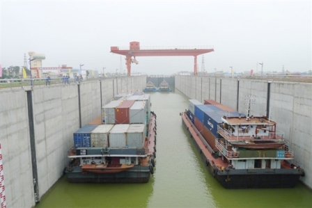桂平二線船閘工程通過交工驗(yàn)收并試通航成功