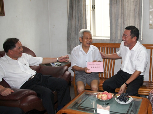 在中國共產(chǎn)黨成立90周年之際,四航局董事長、黨委書記梁卓仁,紀(jì)委書記、工會主席肖干生一行,走訪慰問了廣州地區(qū)的部分離退休老黨員和困難黨員,向他們送去慰問金和慰問品,并致以節(jié)日的問候。