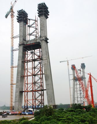 思賢窖特大橋是貴廣鐵路全線關(guān)鍵控制性工程之一,而兩個主塔的施工又是思賢窖特大橋建設(shè)的重點、難點。主塔位于地質(zhì)狀況復雜的思賢窖水道之上,高116.7米,主跨長230米。施工中,貴廣一經(jīng)部通過深挖打牢基礎(chǔ),克服了地下溶洞造成的樁基礎(chǔ)施工障礙;通過采用雙排鋼板樁,將施工影響控制在構(gòu)筑的圍堰之內(nèi),確保了臨近的堤圍安全,為主塔順利封頂?shù)於藞詫嵒A(chǔ)。