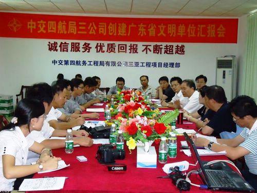 檢查組聽(tīng)取了文明單位創(chuàng)建匯報(bào),觀(guān)看了三公司制作的企業(yè)宣傳片,現(xiàn)場(chǎng)考察了三亞碼頭項(xiàng)目部現(xiàn)場(chǎng)施工情況。雷義指出,三公司文明單位創(chuàng)建工作基礎(chǔ)扎實(shí),亮點(diǎn)紛呈。文明創(chuàng)建與生產(chǎn)經(jīng)營(yíng)工作結(jié)合緊密,互為促進(jìn)。文明創(chuàng)建滲透到了生產(chǎn)經(jīng)營(yíng)的各個(gè)環(huán)節(jié),生產(chǎn)經(jīng)營(yíng)的績(jī)效體現(xiàn)了文明創(chuàng)建的成果;企業(yè)文化建設(shè)特色顯著,普通員工對(duì)企業(yè)文化的認(rèn)同感很高,企業(yè)文化氛圍濃郁。雷義還用“特別能吃苦,特別能戰(zhàn)斗,特別能奉獻(xiàn)”總結(jié)了對(duì)三公司的整體印象。