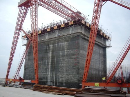 首件沉箱重達(dá)2084.85噸,由內(nèi)外模板加鋼筋混凝土一次澆注成型。目前,第二件沉箱正在進(jìn)行滑模施工。預(yù)計(jì)至12月,該工程首批19 件沉箱將全部完成預(yù)制,進(jìn)入安裝階段。