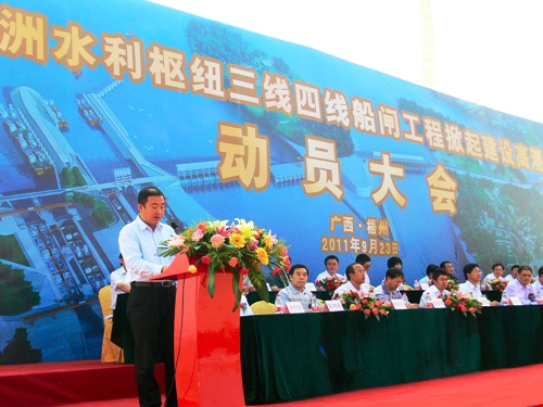 廣西自治區(qū)交通運(yùn)輸廳副廳長周一農(nóng),梧州市委常委、常務(wù)副市長李新元,廣西西江開發(fā)投資集團(tuán)有限公司董事長韋勇球出席動(dòng)員大會(huì)。大會(huì)要求各參建單位搶抓當(dāng)前施工黃金季節(jié),吹響旱季建設(shè)高潮號角,全面進(jìn)入主體工程建設(shè)高潮階段,以力爭完成船閘工程建設(shè)的關(guān)鍵節(jié)點(diǎn)和全年建設(shè)目標(biāo)任務(wù)。