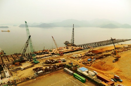 10月2日,鹽田西港工程順利完成了536根鋼管樁的施打工作,標(biāo)志著鹽田西港3號泊位延長段及4號泊位工程沉樁施工全部完成。