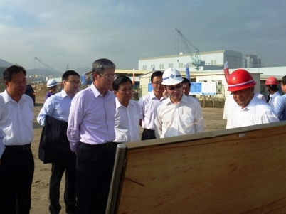 11月4日,招商局集團(tuán)董事長(zhǎng)傅育寧、副總裁胡政一行在招商局漳州開發(fā)區(qū)有限公司總經(jīng)理白景濤和福州分公司經(jīng)理?xiàng)钴蜍叩呐阃?,到福州分公司漳州片區(qū)的招銀8、9號(hào)泊位項(xiàng)目部和雙魚島項(xiàng)目部考察指導(dǎo)工作。