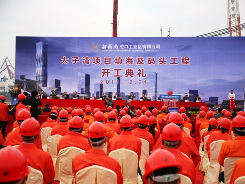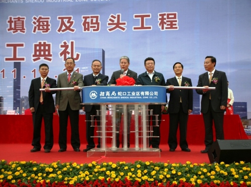 12月21日,蛇口工業(yè)區(qū)太子港項(xiàng)目填海及碼頭工程開工典禮在深圳蛇口港隆重舉行。 中交股份總裁劉起濤、副總裁陳云,招商局集團(tuán)總裁李建紅,蛇口工業(yè)區(qū)有限公司總經(jīng)理?xiàng)钐炱剑暮骄挚偨?jīng)理孫國(guó)強(qiáng)等出席儀式。招商局董事長(zhǎng)傅育寧宣布項(xiàng)目開工,副總裁孫承銘主持開工典禮。中交股份總裁劉起濤、副總裁陳云、招商局董事長(zhǎng)傅育寧、四航局總經(jīng)理孫國(guó)強(qiáng)等領(lǐng)導(dǎo)推動(dòng)“推桿”,共同啟動(dòng)開工儀式。