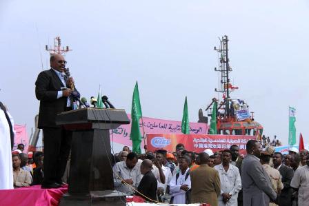 巴希爾在典禮上發(fā)表講話,對蘇丹港新集裝箱碼頭的建設(shè)表示滿意,認為蘇丹港新集裝箱碼頭的建成將進一步提升蘇丹港的吞吐能力。他回顧了中國同蘇丹的友好交往和深厚友誼,感謝中國政府多年來對蘇丹的無私援助和支持,感謝中國公司為建設(shè)蘇丹港新集裝箱碼頭項目所做的努力和貢獻,強調(diào)會將中國和蘇丹的戰(zhàn)略合作伙伴關(guān)系持續(xù)下去,希望進一步擴大和加強兩國合作。