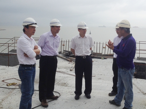 日前,四航局總經(jīng)理孫國強(qiáng)在澳門振華工程部謝偉強(qiáng)經(jīng)理的陪同下,到澳門氹仔新碼頭項(xiàng)目部檢查指導(dǎo)工作。