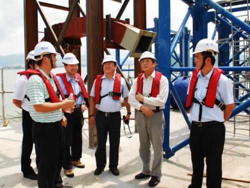 孫子宇聽取了有關主橋施工最新進展和技術特點的介紹,對項目部所取得的成績表示肯定。他指出,主橋工程作為技術含量高、執(zhí)行標準嚴的國際性工程,是整個檳城二橋的決定性工程,項目部要踏踏實實狠抓項目管理,樹立起為國爭光、為企業(yè)爭光的精神,優(yōu)質高效完成工程建設。