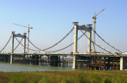 安徽蚌埠淮河公路橋纜索體系轉換提前完成