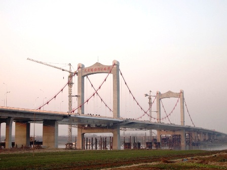 該大橋全長1778米,四航局承建該橋主橋和北岸引橋部分,其中主橋系采用主跨為200米的雙塔雙索面三跨連續(xù)半漂浮體系自錨式懸索橋。該橋的正式通車對于緩解蚌埠市淮河南北兩岸的交通壓力、促進(jìn)兩岸經(jīng)濟(jì)社會的平衡發(fā)展有著極大的促進(jìn)作用,具有重大的經(jīng)濟(jì)價(jià)值和社會價(jià)值。