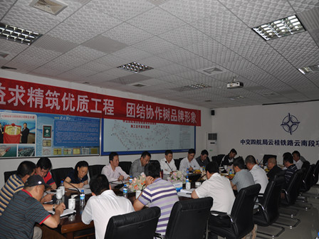 隨后,孫國強一行在云桂鐵路項目部會議室聽取了各分部、各參建子公司總經理和項目部就目前施工生產情況、存在困難、施工生產計劃和需要解決的問題等情況的匯報。 孫國強在會上作了重要指示。他指出此行目的:一要落實公司工作會議的要求,重視項目管理基層工作;二要與云桂公司建立良好的溝通機制,為項目建設創(chuàng)造良好的環(huán)境;三是各參建子公司要加強對分部的支持,以此推動云桂鐵路項目更好的建設。他提到目前項目建設存在的問題:一、安全、質量還沒有完全受控;二、不夠重視關鍵線路的施工;三、沒有完全編制完成關鍵線路的技術方案;四、由于計量方面的工作造成現(xiàn)場現(xiàn)金流出現(xiàn)壓力。