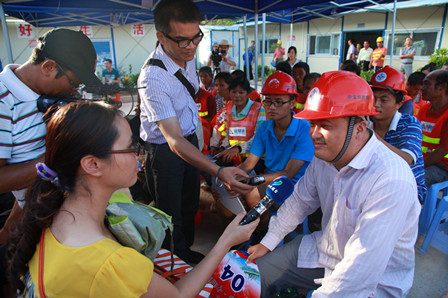 廣明高速公路延長(zhǎng)線建設(shè)指揮部關(guān)愛在高溫下連續(xù)作業(yè)的一線員工,爭(zhēng)取高明區(qū)委宣傳部主辦的“我的夢(mèng)•中國夢(mèng)”百姓宣講暨文化志愿者送清涼慰問首場(chǎng)活動(dòng)在施工現(xiàn)場(chǎng)舉行。