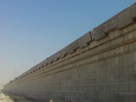 二公司多哈項目部針對現(xiàn)場的實際情況和咨工的要求,對每一層方塊頂面進行磨平、鋪漿,并制定了一系列的安全防護措施,加強施工現(xiàn)場的協(xié)調(diào)和合理調(diào)度,提高工作效率,最后確保方塊安裝安全、優(yōu)質(zhì)、高效推進,為碼頭上部結(jié)構(gòu)提前完工創(chuàng)造了良好的條件。