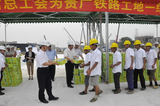 梁卓仁在會上作了講話,對黃業(yè)斌一行到工地慰問一線工人并送清涼表示衷心感謝,要求項目部把省總工會的慰問送到每一位參建員工手中,切實做細做實高溫季節(jié)的各項防暑降溫工作,不僅要關(guān)愛公司員工,還要關(guān)愛奮戰(zhàn)在一線的所有勞務派遣工和農(nóng)民工。梁卓仁強調(diào),貴廣鐵路關(guān)系到兩省一區(qū),建成后對促進當?shù)亟?jīng)濟發(fā)展有很大作用,要盡心盡責建設好該項目;雖然項目建設曾經(jīng)遭遇過一些波折,但目前已到最后沖刺階段,要充分發(fā)揚四航局的優(yōu)良傳統(tǒng),既能打硬仗、更能打勝仗,在確保安全、質(zhì)量和環(huán)保的前提下,嚴格按照業(yè)主、政府的要求按期完成各項施工任務。