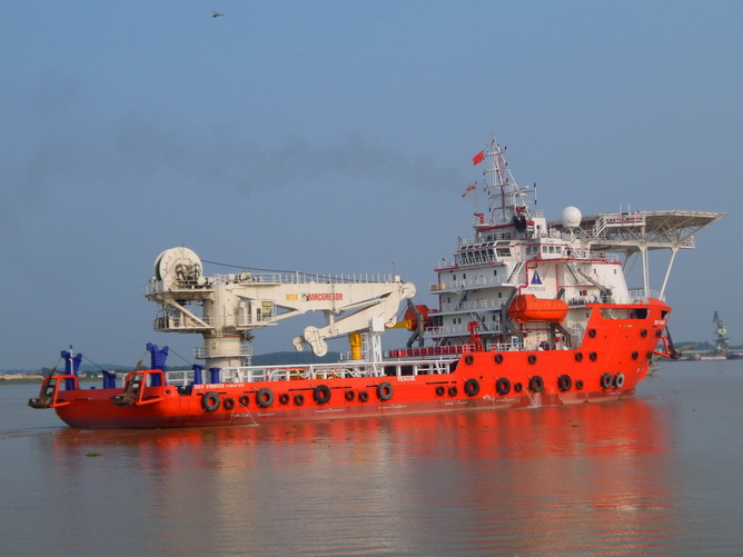 該船全長(zhǎng)85米,型深8米,型寬22米,具備平臺(tái)貨品物資供應(yīng)、對(duì)外消防、直升機(jī)運(yùn)輸、百噸等級(jí)吊重、船舶主動(dòng)防橫傾、水下潛水服務(wù)、百人級(jí)安全救助、200人級(jí)住宿等能力。船體配備雙艏側(cè)推,雙舵槳機(jī)、周期性無(wú)人機(jī)艙、DP2動(dòng)力定位系統(tǒng)、配有四點(diǎn)定位絞車(chē)及后期改造成飽和潛水的能力,入級(jí)美國(guó)船級(jí)社,滿足無(wú)限航區(qū)要求。
