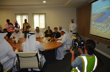 8月27日,卡塔爾首相阿卜杜拉、交通大臣賈希姆在中國駐卡塔爾大使高有禎及卡塔爾內政部、財政部、海關總署等官員陪同下,視察了中國港灣總承包、四航局二公司承建的多哈新港項目。