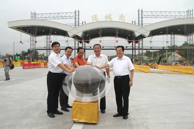 9月29日,四航局、二公院聯(lián)合投資建設(shè)的咸寧通界高速公路正式通車。四航局董事長梁卓仁,二公院董事長孟黔靈,湖北省交通運(yùn)輸廳領(lǐng)導(dǎo)白山云、通城縣委書記姜衛(wèi)東、縣長來華雄等出席了簡樸隆重的通車儀式,并同按下了通車啟動(dòng)球,標(biāo)志著通界高速公路正式投入運(yùn)營。