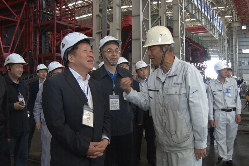 在桂山沉管預(yù)制廠,曹健林一行察看了大橋“超級沉管”生產(chǎn)流程和已預(yù)制完工的沉管、管內(nèi)小構(gòu)件實體,聽取了現(xiàn)場人員關(guān)于深埋沉管“半剛性”結(jié)構(gòu)設(shè)計、超大管節(jié)質(zhì)量控制措施、深水深槽沉管安裝等科技創(chuàng)新成果的匯報。曹健林一行還到西人工島、沉管隧道等施工現(xiàn)場考察,并深入沉管隧道內(nèi)詳細察看了沉管防滲控制、端頭定位等情況。