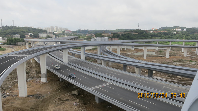 該工程為城市一級主干道,主線長約1.3公里,橋梁總長4921米,包括左右幅2座匝道橋,主線采用雙向六車道標準設計與施工。在實施過程中,項目部合理組織施工,注重工程安全、質量及進度工作,圓滿完成了全部施工任務,得到業(yè)主、泉州市及福建省的肯定。工程于2012年7月建成,優(yōu)化了福建泉州城市交通環(huán)境,有利于促進泉州地區(qū)社會經濟協調發(fā)展。