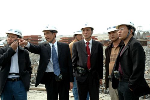 該工程合同工期三年半,需施打3425根大直徑鋼管樁和大量的樁內(nèi)嵌巖、錨錠施工,要完成碼頭基槽、駁岸區(qū)及港池航道挖泥2000多萬立方米,施工技術(shù)標(biāo)準(zhǔn)以英國標(biāo)準(zhǔn)為主。項目部按照集團(tuán)和局領(lǐng)導(dǎo)安全、優(yōu)質(zhì)、高效地按期完成施工任務(wù)的要求,制訂了"講誠信、講和諧、創(chuàng)效益、創(chuàng)品牌"的工作目標(biāo)和措施,高效配置資源,嚴(yán)密組織,精心施工。自去年3月1日開工至今,完成了三分之一的鋼管樁施打、四分之一的挖泥施工和400米碼頭縱橫梁澆注,其它工序也按計劃進(jìn)行,形成了1000多米的流水作業(yè)線,完成施工產(chǎn)值5.8億元?,F(xiàn)在,項目部全體員工士氣高昂,決心為企業(yè)發(fā)展做出更大貢獻(xiàn)!圖為副局長羅寬榮、中港副總經(jīng)理莫文賀到現(xiàn)場慰問員工、指導(dǎo)工作。