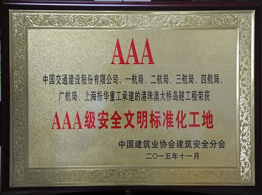 港珠澳大橋島隧工程榮獲2015年全國(guó)"AAA級(jí)安全文明標(biāo)準(zhǔn)化工地"