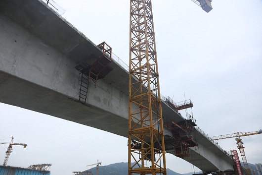 12月4日, 四航局珠海城際項目部負責施工的前山水道特大橋最大跨度連續(xù)梁澆筑完畢,標志著該特大橋主橋順利合攏。