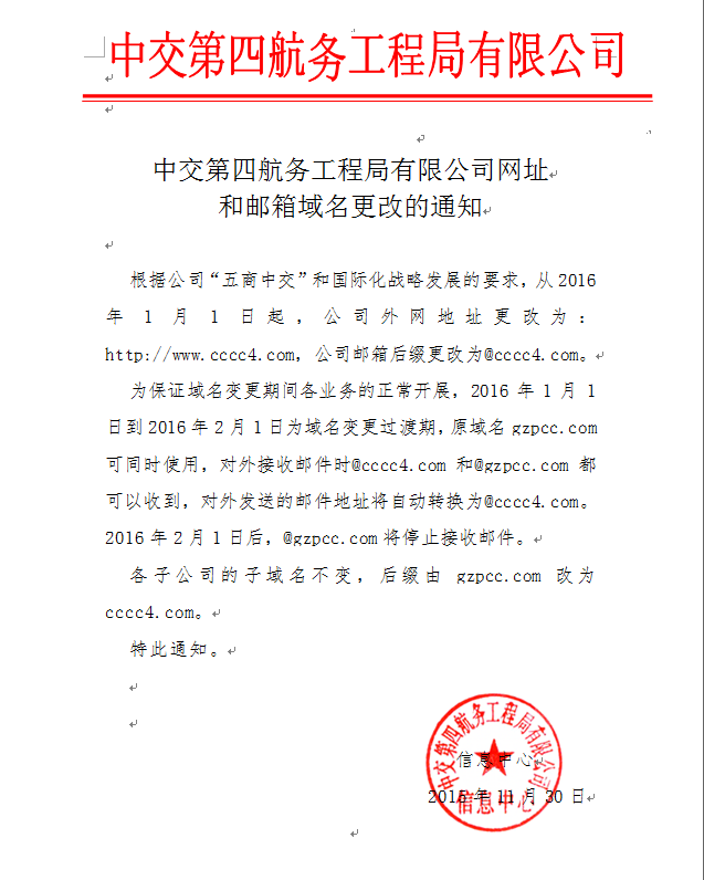 四航局公司網(wǎng)址和郵箱域名更改的通知