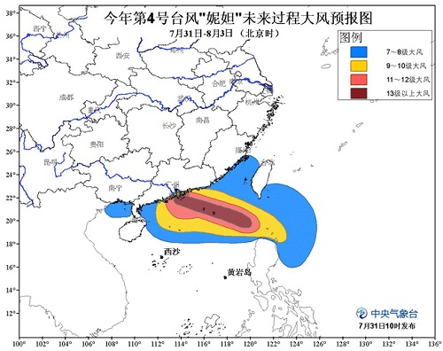 中央氣象臺監(jiān)測顯示,今年第4號臺風“妮妲”(強熱帶風暴級)的中心7月31日下午5時位于菲律賓呂宋島北部近海海面,中心附近最大風力有11級。預(yù)計,“妮妲”中心將以每小時20至25公里的速度向西偏北方向移動,將于2日白天在廣東汕尾到陽江一帶沿海登陸,登陸時為臺風級或強臺風級。廣東省防總通報,臺風“妮妲”或正面襲擊廣東珠三角地區(qū),為廣東帶來“風、雨、浪、潮、洪”五碰頭的最不利情況,防災(zāi)形勢極其嚴峻。省內(nèi)多地發(fā)生城鄉(xiāng)內(nèi)澇、中小河流洪水、山洪、地質(zhì)災(zāi)害的氣象風險較高,需加強防范。