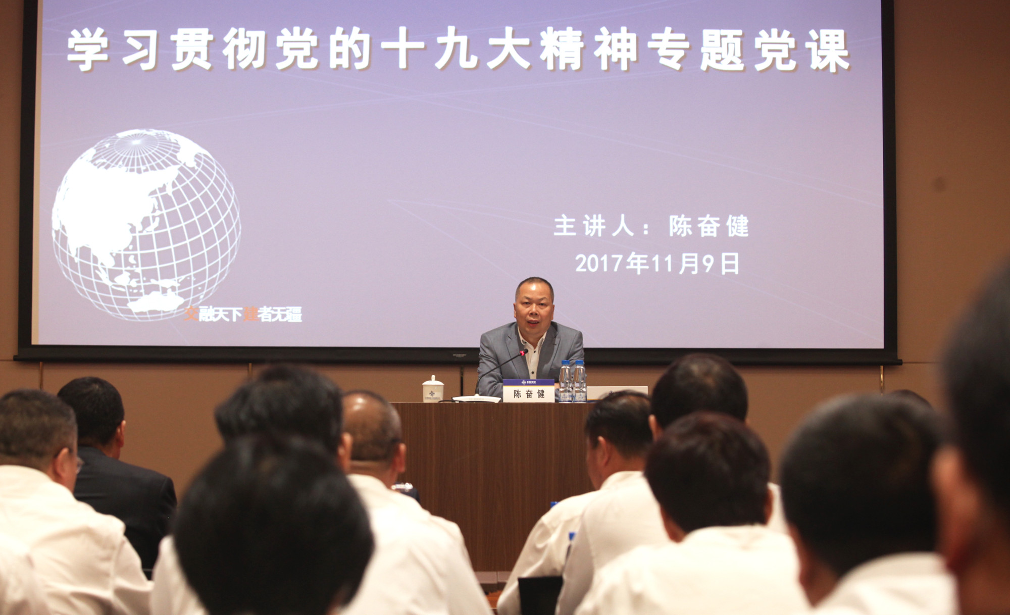 為貫徹落實(shí)中國交建黨的十九大精神傳達(dá)學(xué)習(xí)動(dòng)員部署視頻會(huì)議精神,迅速掀起中國交建學(xué)習(xí)十九大精神的熱潮,11月9日下午,黨的十九大代表,中國交建總裁、黨委副書記陳奮健在廣州之窗商務(wù)港附樓大會(huì)議室,為四航局、中交城投、廣航局、四航院、中交產(chǎn)投等華南區(qū)域各單位講黨課,分享十九大精神學(xué)習(xí)體會(huì),強(qiáng)調(diào)要深刻領(lǐng)會(huì)和準(zhǔn)確把握十九大精神實(shí)質(zhì),切實(shí)用習(xí)近平新時(shí)代中國特色社會(huì)主義思想和十九大精神指導(dǎo)工作,加快改革創(chuàng)新、轉(zhuǎn)型升級(jí),在新的歷史方位中向著全面建設(shè)具有全球競爭力的世界一流企業(yè)目標(biāo)努力前進(jìn)!